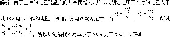 一白炽灯泡的额定功率与额定电压分别为36W与36V.若把此灯泡接到输出电压为18V的电源两端,则灯泡消耗的电功率