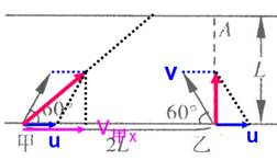 ,甲、乙船头均与岸边成60°角,且乙船恰好能直达正对岸的