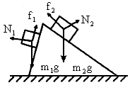 均沿粗糙斜面匀速下滑,三角形木块在地面上,则粗糙水平面对三角形木块