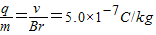 【答案】分析:(1)考查带电粒子在磁场中的运动,根据粒子的运动的轨迹可以求得粒子的比荷.