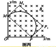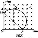 (1)该粒子在磁场中运动半径为r,如图甲,依题意MP连线即为该粒子在磁场中做匀速圆周运动的最小直径,由几何关系得: