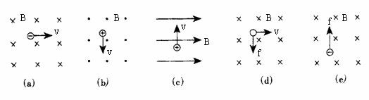 试判断下列各图中带电粒子受洛仑兹力方向或所带电荷种类或运动方向。