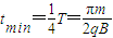 同理.粒子由右上方射入磁场时且速度方向与MN间夹角为45°时在磁场中运行的时间最短,