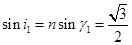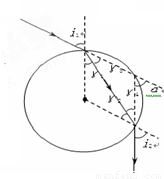 ,一细光线垂直圆柱体的轴线以i1=60°的入射角射入圆柱体。