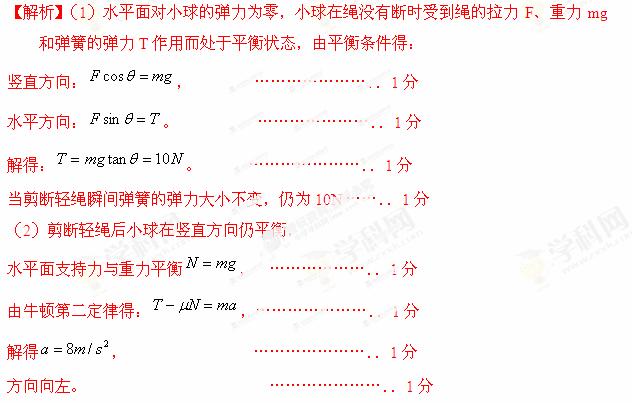(2013北京市东城区联考)在动摩擦因数μ=0.2的水平面上有一个质量为m=1kg的小球,小球与水平轻弹簧及与竖直方向成θ=45o角的不可伸长的轻绳一端相连,如图16所示,此时小球处于静止平衡状态,且水平面对小球的弹力恰好为零,当剪断轻绳的瞬间,取g=10m/s2,求: