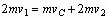 A、B相碰满足动量守恒 解得两球跟C球相碰前的速度v1=1 m/s(1分) 两球与C碰撞满足动量守恒 解得两球碰后的速度v2=0.5 m/s(1分) |