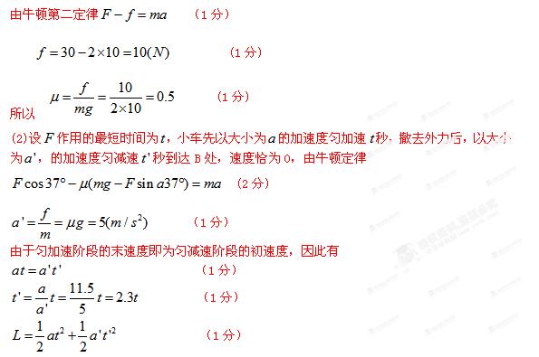 (2)用大小为30N,与水平方向成37°的力斜向上拉此物体,使物体从A处由静止开始运动并能到达B处,求该力作用的最短时间t。