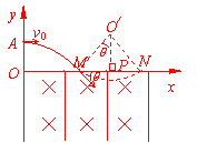 ÈçͼËùʾ£¬Ö±½Ç×ø±êϵxOyλÓÚÊúÖ±Æ½ÃæÄÚ£¬ÔÚˮƽµÄxÖáÏ·½´æÔÚÔÈÇ¿´Å³¡ºÍÔÈÇ¿µç³¡£¬´Å³¡µÄ´Å¸ÐӦΪB,·½Ïò´¹Ö±xOyÆ½ÃæÏòÀµç³¡Ï߯½ÐÐÓÚyÖá¡£Ò»ÖÊÁ¿Îªm¡¢µçºÉÁ¿ÎªqµÄ´øÕýµçµÄСÇò£¬´ÓyÖáÉϵÄAµãˮƽÏòÓÒÅ׳ö£¬¾xÖáÉϵÄMµã½øÈëµç³¡ºÍ´Å³¡£¬Ç¡ÄÜ×öÔÈËÙÔ²ÖÜÔ˶¯£¬´ÓxÖáÉϵÄNµãµÚÒ»´ÎÀ뿪µç³¡ºÍ´Å³¡£¬MNÖ®¼äµÄ¾àÀëΪL£¬Ð¡Çò¹ýMµãʱµÄËÙ¶È·½ÏòÓëxÖáµÄ·½Ïò¼Ð½ÇΪ
