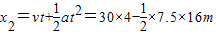 t<6s,所以刹车在6s内的位移等于在4s内的位移.