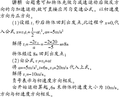 点评:对于这种先匀减速至零又反向匀加速,且全过程加速度不变的匀变速直线运动,解答时无需再分阶段,直接对全程应用相关的公式即可. |