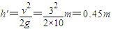 摸高约为:H=h'+h=2.59m…⑤