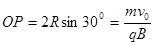 电子(e,m)以速度v0与x轴成30°角垂直射入磁感强度为B的匀强磁场中,经一段时间后,打在x轴上的P点,如图10所示,则P点到O点的距离为____,电子由O点运动到P点所用的时间为_____