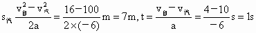 解法一:汽车减速至与自行车共速时刚好碰不上自行车是这一问题的临界条件. 汽车减速到 4m/s时发生的位移和运动时间分别为