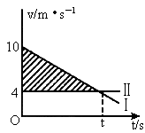 这段时间内自行车发生的位移 解法二:利用v-t图象进行求解,如图所示,直线Ⅰ、Ⅱ分别是汽车与自行车的运动图线,其中斜线部分的面积表示当两车车速相等时汽车比自行车多发生的位移,即为汽车关闭油门时离自行车的距离s.图线Ⅰ的斜率即为汽车减速运动的加速度,所以应有