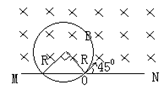 £¨1£©Óë¸ô°å³É450½ÇµÄÁ£×Ó½øÈë´Å³¡ºóµÄ¹ì¼£ÈçͼËùʾ£¬ÉèÁ£×ÓÔڴų¡ÖеÄÔ˶¯°ë¾¶ÎªR£¬ÔòÓÐ: