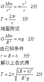 。试导出飞船在上述圆轨道上运行的周期T的公式(用h、R、g表示),然后计算周期的数值(保留两位有效数字)。