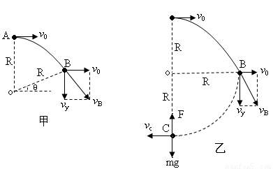 (12分)如图所示,长为R的轻绳一端固定于O点,另一端拴一质量为m的小球,把球拉至最高点A,然后以υ0=