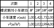 结论:在误差允许的范围内橡皮筋对小车做功与小车速度的平方成正比 |