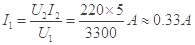 ⑶S闭合:I2′=2I2=10A U1I1′=U2I2′