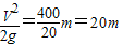 由自由落体的速度位移的关系式 V2=2gh可得,h=