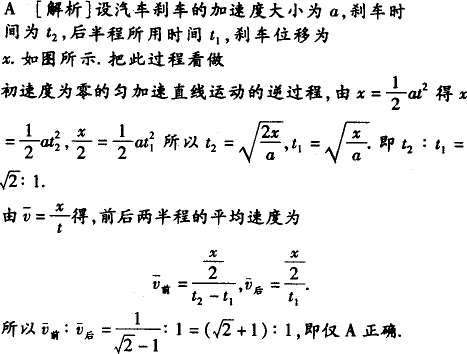 汽车刹车后做匀减速直线运动,最后停了下来,在刹车过程中,汽车前半程的平均速度与后半程的平均速度之比是