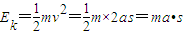 点评:本题中关于木块动能的计算,也可运用动能定理,W合=EK-0,而W合=F合?s=ma?s,所以Ek=mas,即所以木块的动能Ek与下滑距离s成正比.