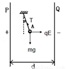 如图所示,竖直放置的平行板电容器P板带正电,Q板带负电,两板间距d=5cm,两板电势差UPQ=25v,一质量m=0.2kg的带电小球A用绝缘细线悬挂于极板之间,小球静止时细线与竖直方向之间的夹角α=370。(sin37º=0.6,cos37º =0.8 ,g取10m/s2)求: