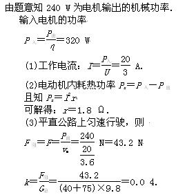 | 电动车的质量 | 40 kg | 额定连续输出功率 | 240 W |