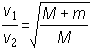 质量为M的大炮, 沿水平方向发射一颗质量为m的炮弹, 在炮身固定不动和可以自由反冲两情况下, 炮弹的初速度之比为