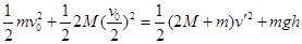 ②两滑块碰撞完毕后,小球上升到最高点的过程,系统在水平方向上所受合外力为零,动量守恒,小球上升到最高点时,系统有相同的水平速度,则2Mv +mv0=(2M+m)v′(2分)