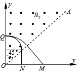 行板间,沿中线PQ做直线运动,穿出平行板后从y轴上坐标为(0,0.2m)的Q点垂直y轴射入磁场区,离子通过x轴时的速度方向与x轴正方向夹角在45°~90°之间,不计