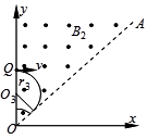 (2)当通过x轴时的速度方向与x轴正方向夹角为45°时,![]()