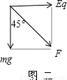 B、对液滴进行受力分析,其受力情况如图二所示,故物体所受合力F=