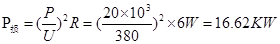 某小型水电站输送功率为20KW,输电线路总电阻为6欧姆。