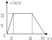 【答案】分析:(1)由0~60s内汽车的加速度随时间变化的图象可知,0~10s内汽车做初速度等于零加速度为2m/s2的匀加速直线运动,10~40s内做匀速直线运动,40~60s内做加速度为=-1m/s2的匀加速直线运动.