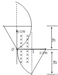 【答案】分析:粒子垂直进入磁场后做匀速圆周运动,当粒子的轨迹恰好与x轴方向的右边界相切时,y值正值达到最大;当粒子沿-y轴方向射入磁场时,粒子从磁场右边界x轴下方射出时,y的负值达到最大,根据几何知识求解.
