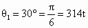 解:通过跟正弦式电流的标准式比较,直接代入计算,线圈从中性面开始转动产生的正弦式电流的标准式是 当线圈平面转过的角度 经历的时间和对应的电流值分别为