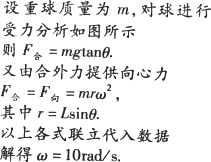 已知瓦特节速器上装有重球的两根棒,各棒长均为20 cm,设机器在运转时,该棒与竖直的转动轴AB之间的夹角为60°,如图所示,求此节速器的角速度为________.(g取10 m/s2)