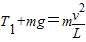 如图所示,带负电的小球从右端向左经过最低点A时,悬线张力为T1,当小球从左向右经过最低点A时,悬线张力为T2,则T1 T2(填>、<或=).