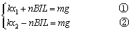 一劲度系数为k的轻质弹簧,下端挂有一匝数为n的矩形线框abcd,bc边长为L,线框下边部分处于匀强磁场中,磁感应强度大小为B,方向与线框平面垂直,如图所示,垂直纸面向里.线框中通以电流,方向如图,线框处于平衡状态,现令磁场反向,磁感应强度大小仍为B,线框达到新的平衡,在此过程中,线框位移的大小Dx=________,方向________.![]()