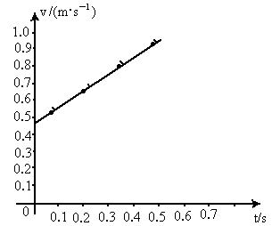根据求出的速度和时刻的对应关系,作出 v-t图象如图所示,各点几乎落在同一直线上,速度越来越大,卷帘门下落的这段时间内做加速运动.