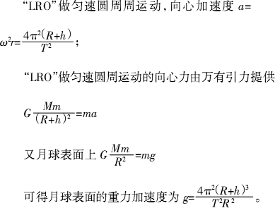 2008年10月发射“月球勘测轨道器”(LRO),LRO每天在50 km的高度穿越月球两极上空10次.若以T表示LRO在离月球表面高度h处的轨道上做匀速圆周运动的周期,以R表示月球的半径,LRO运行时的向心加速度a=________;月球表面的重力加速度________.