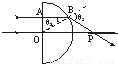 两束平行的细激光束,垂直于半圆柱玻璃的平面射到半圆柱玻璃上,如图所示.已知其中一条光线沿直线穿过玻璃,它的入射点是O;另一条光线的入射点为A,穿过玻璃后两条光线交于P点.已知玻璃截面的圆半径为R,OA=