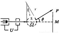 电视机的显像管中,电子束的偏转是用磁偏转技术实现的.电子束经过电压为U的加速电场后,进入一圆形匀强磁场区,如图所示.磁场方向垂直于圆面.磁场区的圆心为O,半径为r.当不加磁场时,电子束将通过O点打到屏幕的中心M点,为了让电子束射到屏幕边缘的P点,需要加磁场,使电子束偏转一已知角度θ,此时磁场的磁感应强度B为多少?