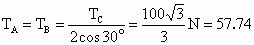 如图所示,大小相等,重量均为G的A、B球,半径均为r,细绳AO、BO的长度也为r,通过绳子CO挂在天花板上.