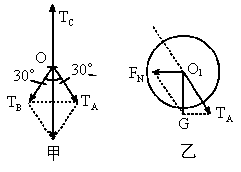 根据题意可知, A、B的球心O1、O2与三根细绳的结点O构成正三角形,细绳AO、BO中拉力将 A球的重力G沿OA延长线方向和