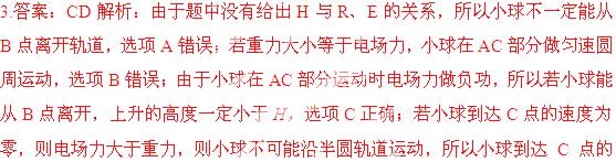 圆弧。一个质量为m电荷量为 -q的带电小球,从A点正上方高为H处由静止释放,并从A点沿切线进入半圆轨道。不计空气阻力及一切能量损失,关于带电粒子的运动情况,下列说法正确的是( )
