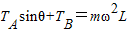 (2)当转轴转动的角速度最大时,B绳拉力为TB=2mg,A绳拉力不变,