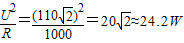 将该电压加在一阻值为1kΩ的纯电阻用电器,用电器恰能正常工作,则该用电器的额定功率为P=