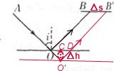 从图中可以看出,液面高度升高,由于入射角i不变,故反射角也不变;根据直角三角形O′CD 可得: